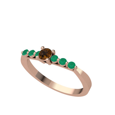 Dumanlı kuvars ve kök zümrüt 925 ayar rose altın kaplama gümüş yüzük