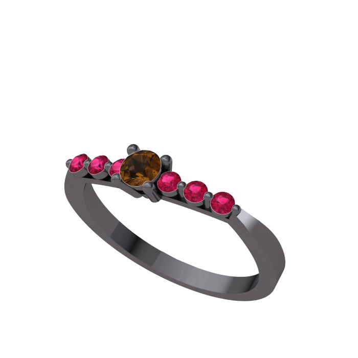 Dumanlı kuvars ve rodolit garnet 925 ayar siyah rodyum kaplama gümüş yüzük