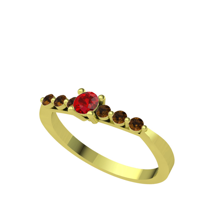 Garnet ve dumanlı kuvars 14 ayar altın yüzük