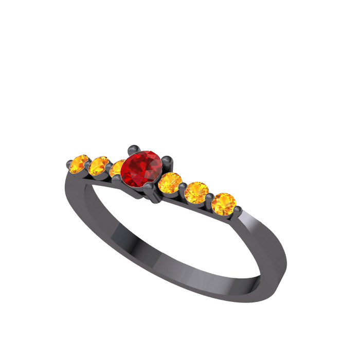 Garnet ve sitrin 925 ayar siyah rodyum kaplama gümüş yüzük