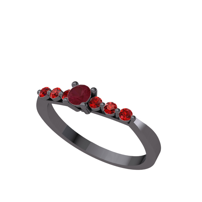 Kök yakut ve garnet 925 ayar siyah rodyum kaplama gümüş yüzük