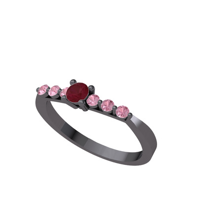 Kök yakut ve pembe kuvars 925 ayar siyah rodyum kaplama gümüş yüzük