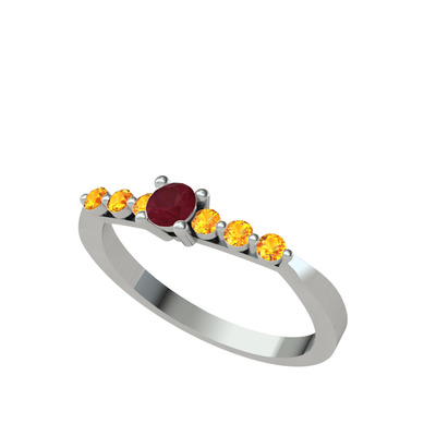 Kök yakut ve sitrin 8 ayar beyaz altın yüzük