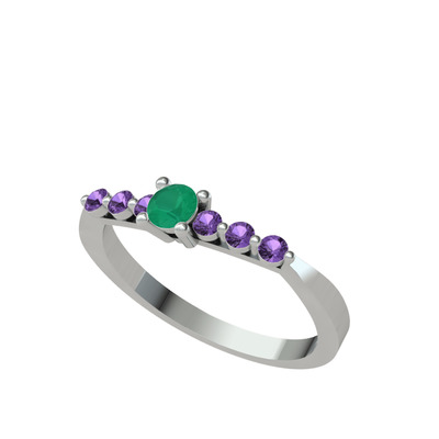 Kök zümrüt ve ametist 18 ayar beyaz altın yüzük