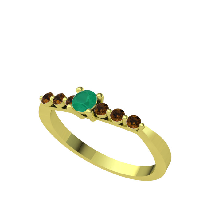 Kök zümrüt ve dumanlı kuvars 18 ayar altın yüzük