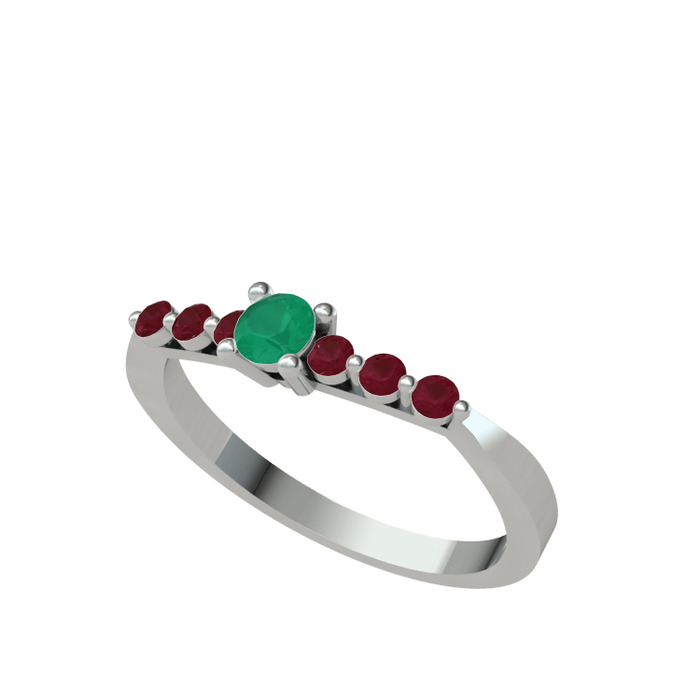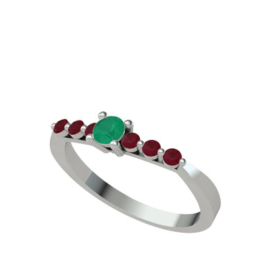 Kök zümrüt ve kök yakut 18 ayar beyaz altın yüzük