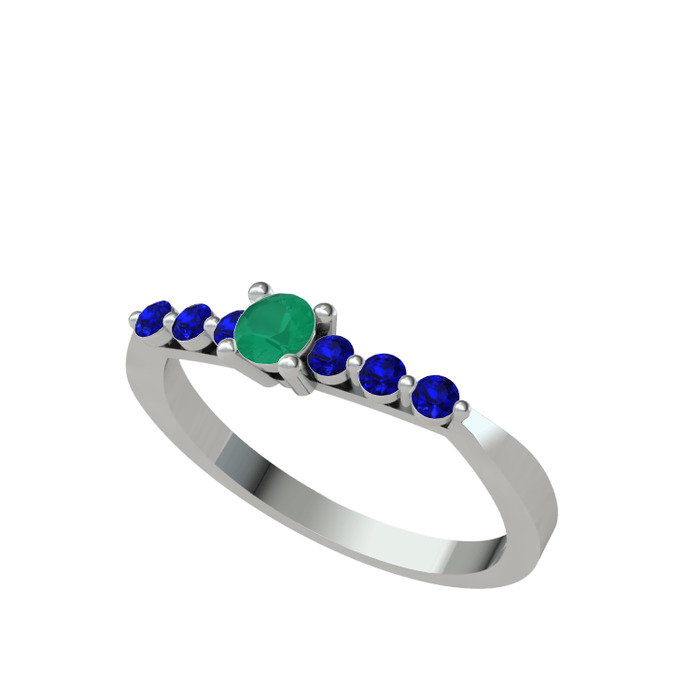 Kök zümrüt ve lab safir 14 ayar beyaz altın yüzük
