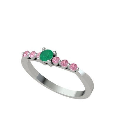 Kök zümrüt ve pembe kuvars 18 ayar beyaz altın yüzük