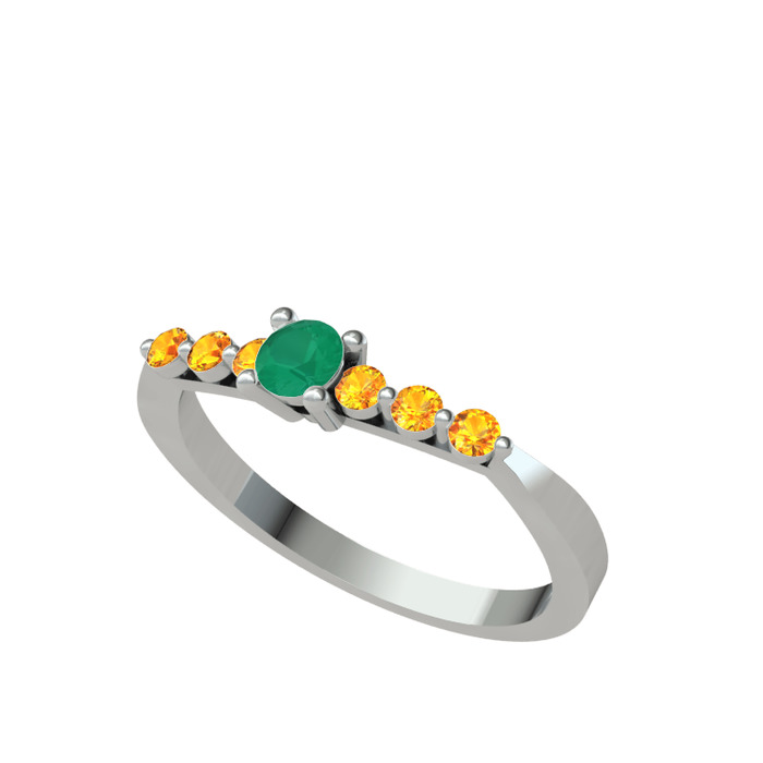 Kök zümrüt ve sitrin 14 ayar beyaz altın yüzük