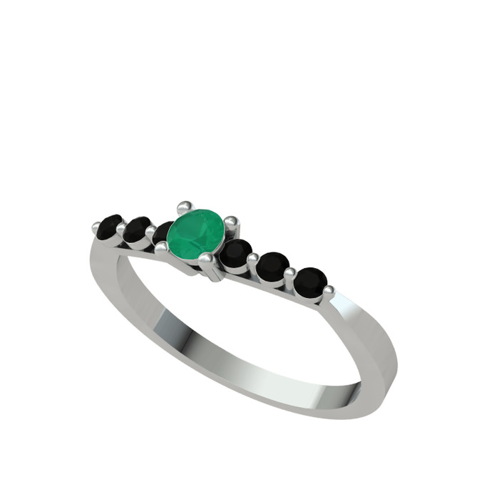 Kök zümrüt ve siyah zirkon 8 ayar beyaz altın yüzük