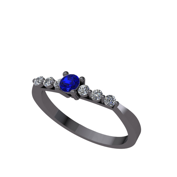 Lab safir ve beyaz zirkon 925 ayar siyah rodyum kaplama gümüş yüzük