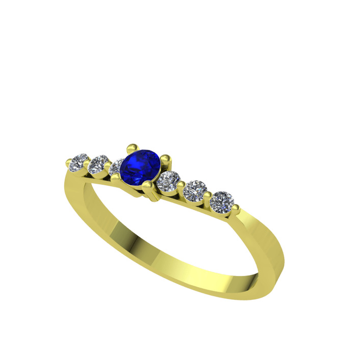 Lab safir ve pırlanta 925 ayar altın kaplama gümüş yüzük (0.04 karat)