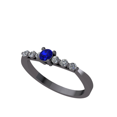 Lab safir ve swarovski 925 ayar siyah rodyum kaplama gümüş yüzük