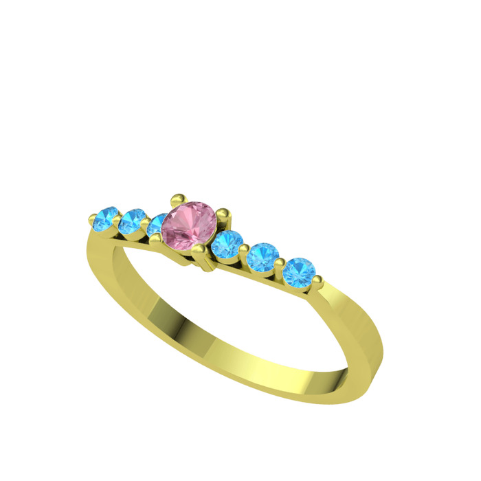 Pembe kuvars ve akuamarin 14 ayar altın yüzük