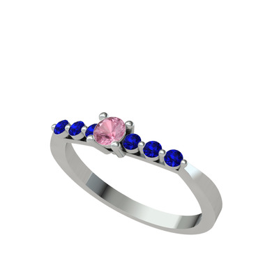 Pembe kuvars ve lab safir 18 ayar beyaz altın yüzük