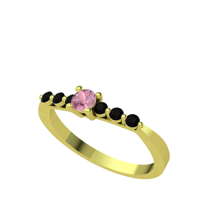 Pembe kuvars ve siyah zirkon 8 ayar altın yüzük