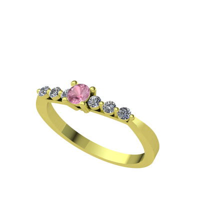 Pembe kuvars ve swarovski 18 ayar altın yüzük