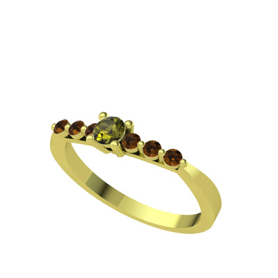 Peridot ve dumanlı kuvars 18 ayar altın yüzük