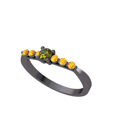 Peridot ve sitrin 925 ayar siyah rodyum kaplama gümüş yüzük