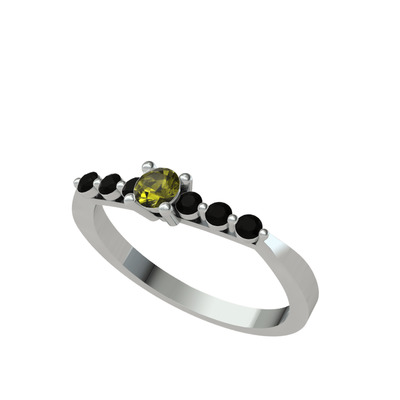 Peridot ve siyah zirkon 18 ayar beyaz altın yüzük