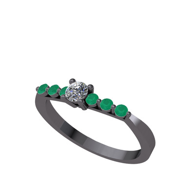 Pırlanta ve kök zümrüt 925 ayar siyah rodyum kaplama gümüş yüzük (1.44 karat)