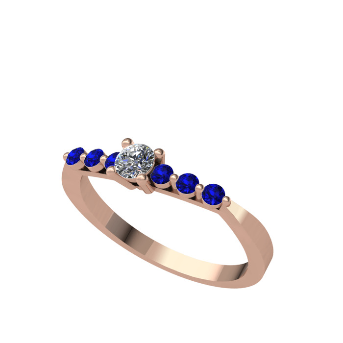 Pırlanta ve lab safir 18 ayar rose altın yüzük (1.44 karat)