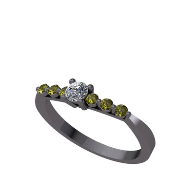 Pırlanta ve peridot 925 ayar siyah rodyum kaplama gümüş yüzük (1.44 karat)
