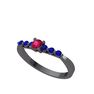 Rodolit garnet ve lab safir 925 ayar siyah rodyum kaplama gümüş yüzük