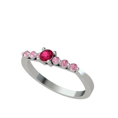 Rodolit garnet ve pembe kuvars 18 ayar beyaz altın yüzük
