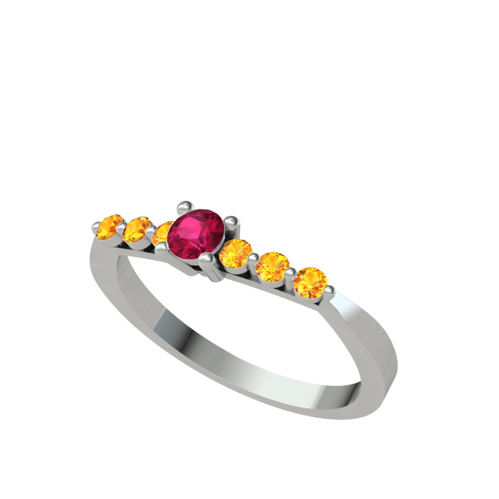 Rodolit garnet ve sitrin 8 ayar beyaz altın yüzük