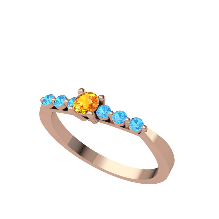 Sitrin ve akuamarin 925 ayar rose altın kaplama gümüş yüzük