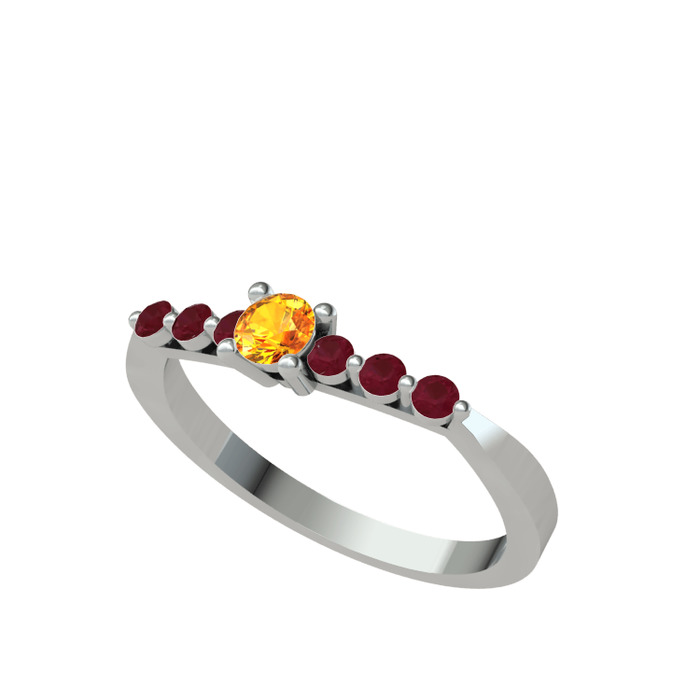 Sitrin ve kök yakut 14 ayar beyaz altın yüzük