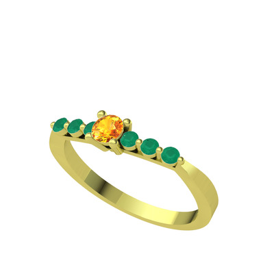 Sitrin ve kök zümrüt 14 ayar altın yüzük