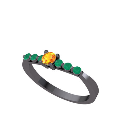 Sitrin ve kök zümrüt 925 ayar siyah rodyum kaplama gümüş yüzük