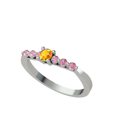 Sitrin ve pembe kuvars 14 ayar beyaz altın yüzük