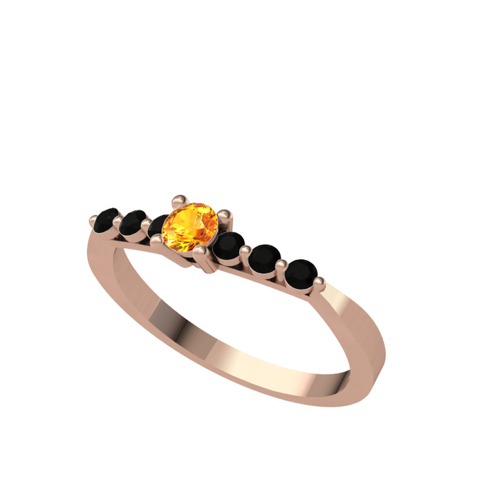 Sitrin ve siyah zirkon 8 ayar rose altın yüzük