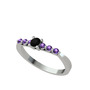 Siyah zirkon ve ametist 14 ayar beyaz altın yüzük