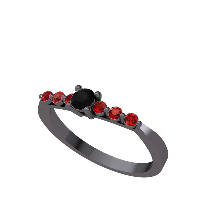 Siyah zirkon ve garnet 925 ayar siyah rodyum kaplama gümüş yüzük