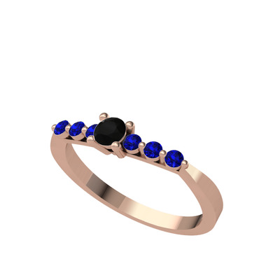 Siyah zirkon ve lab safir 14 ayar rose altın yüzük