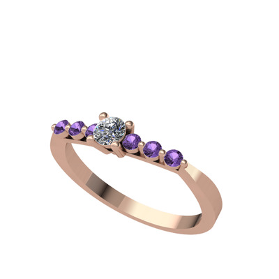 Swarovski ve ametist 925 ayar rose altın kaplama gümüş yüzük