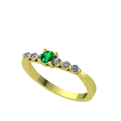Yeşil kuvars ve beyaz zirkon 14 ayar altın yüzük