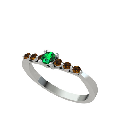 Yeşil kuvars ve dumanlı kuvars 8 ayar beyaz altın yüzük