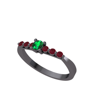 Yeşil kuvars ve kök yakut 925 ayar siyah rodyum kaplama gümüş yüzük