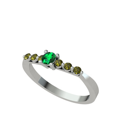 Yeşil kuvars ve peridot 18 ayar beyaz altın yüzük