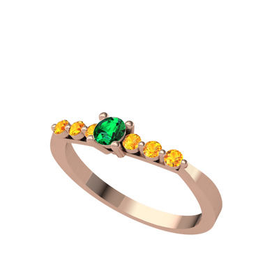 Yeşil kuvars ve sitrin 925 ayar rose altın kaplama gümüş yüzük