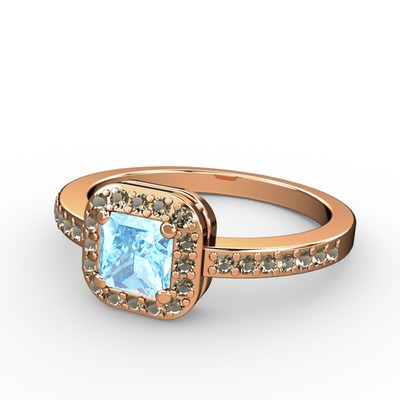 Akuamarin ve dumanlı kuvars 8 ayar rose altın yüzük