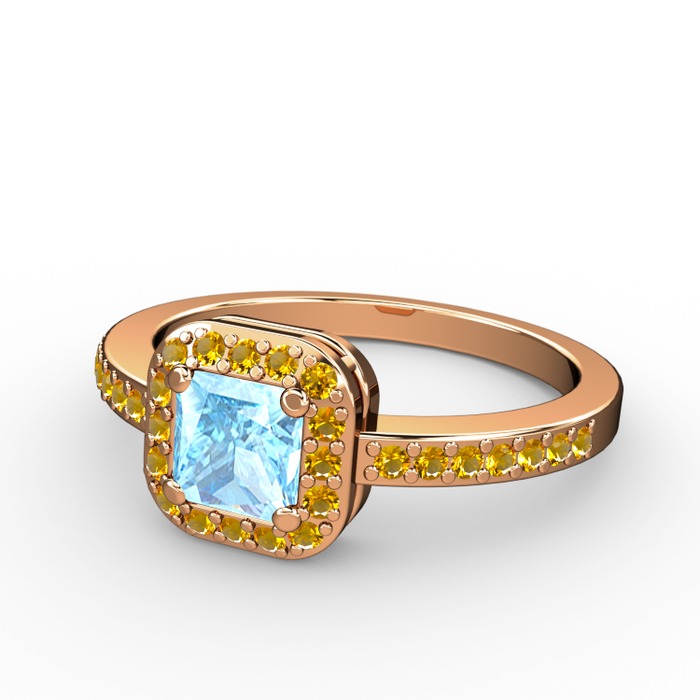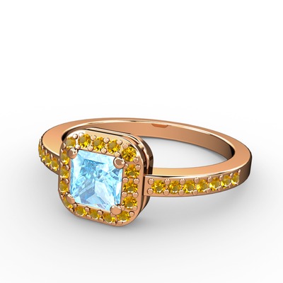 Akuamarin ve sitrin 14 ayar rose altın yüzük