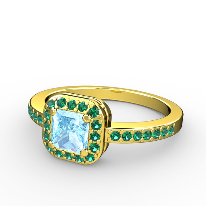 Akuamarin ve yeşil kuvars 8 ayar altın yüzük