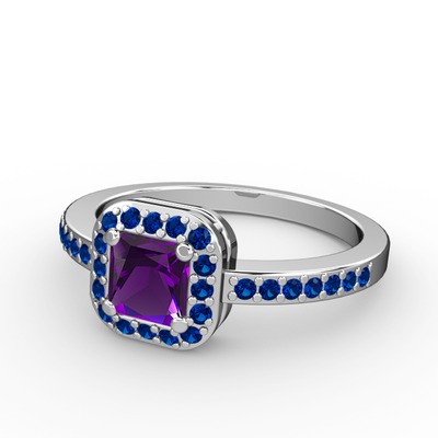 Ametist ve lab safir 925 ayar gümüş yüzük
