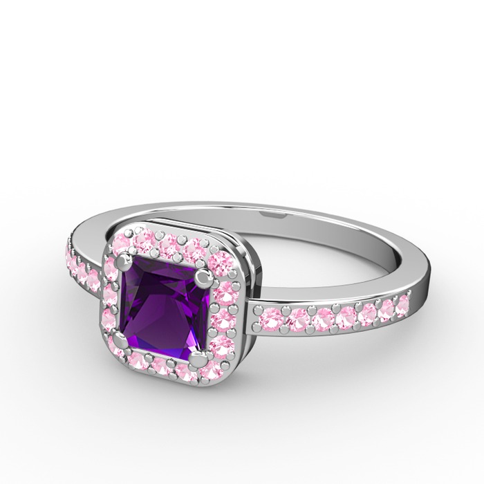 Ametist ve pembe kuvars 925 ayar gümüş yüzük